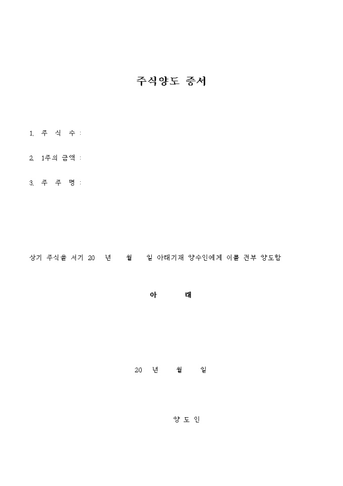 주식 양도증서(견본)