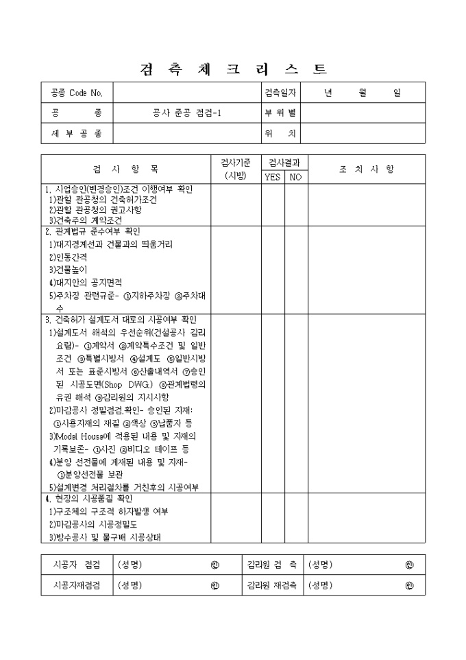 검측체크리스트(공사 준공 점검)