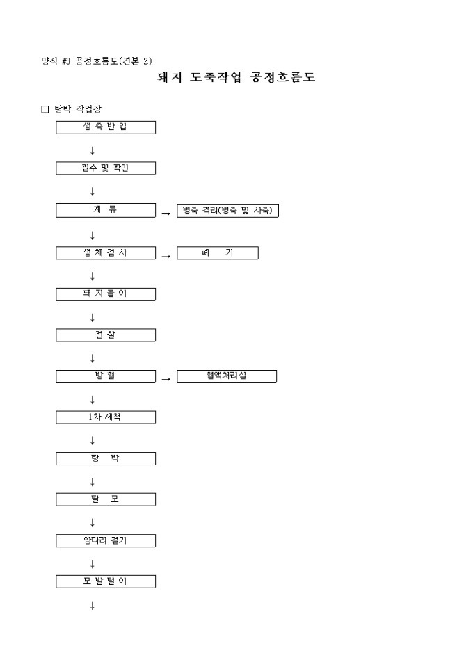 돼지 도축작업을 예로들은 공정흐름도 견본입니다.