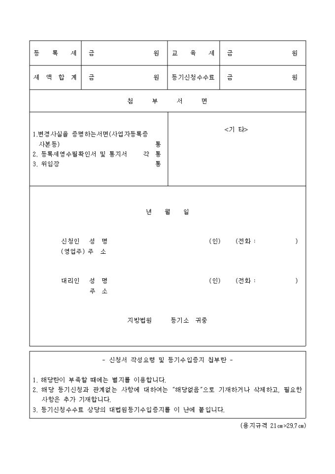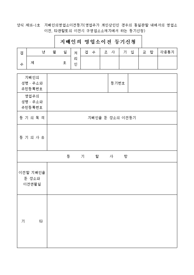 9,000원/월지배인의영업소이전등기(영업주가 개인상인인 경우의 동일관할 내에서의 영업소 이전, 타관할로의 이전시 구영업소소재지에서 하는 등기신청)입니다.