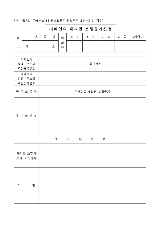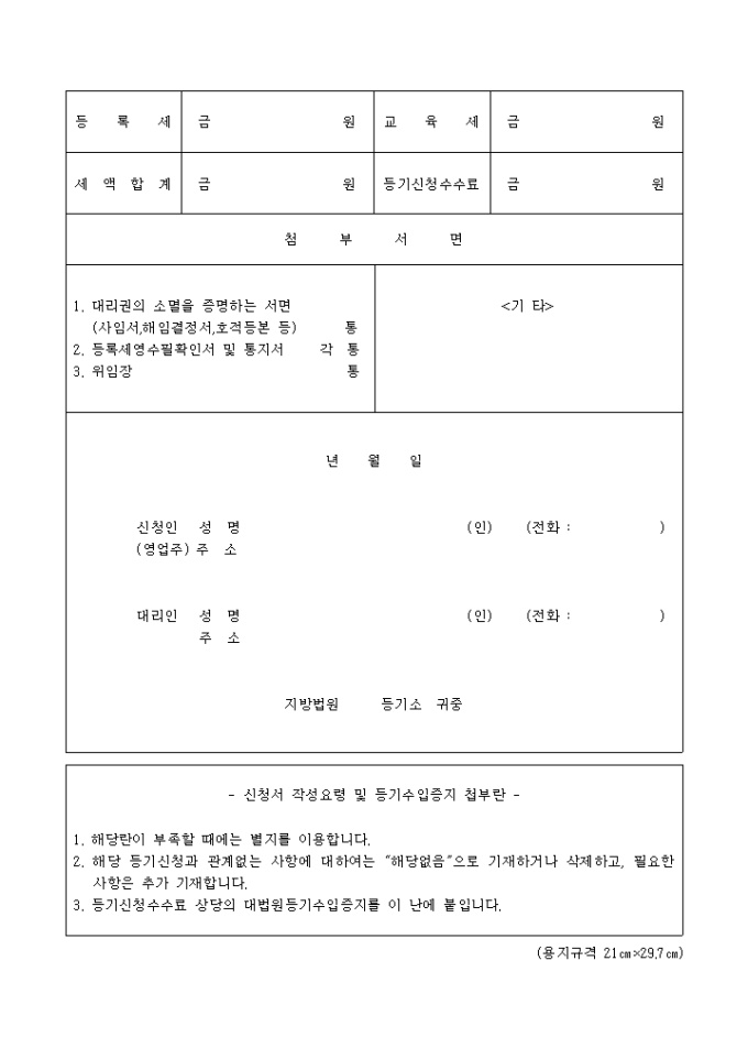 9,000원/월지배인의 성명, 주소와 주민등록번호, 영업주의 성명, 주소, 주민등록번호, 등기의 목적, 등기의 사유 등을 기입합니다.