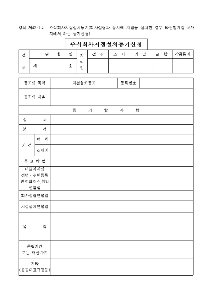 9,000원/월주식회사지점설치등기(회사설립과 동시에 지점을 설치한 경우 타관할지점 소재지에서 하는 등기신청)