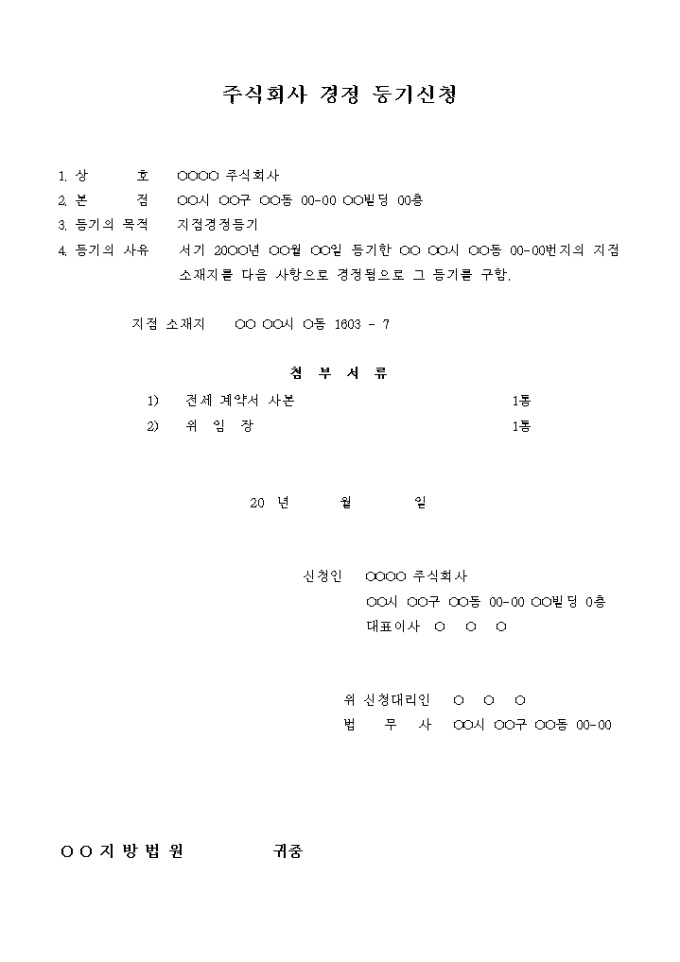9,000원/월주식회사의 지점소재지를 경정하는 주식회사 경정 등기신청서입니다.