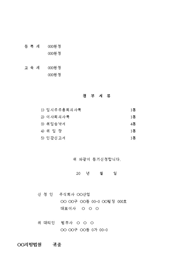 주식회사 변경 등기 신청서(대표이사 사망으로 인한 변경)