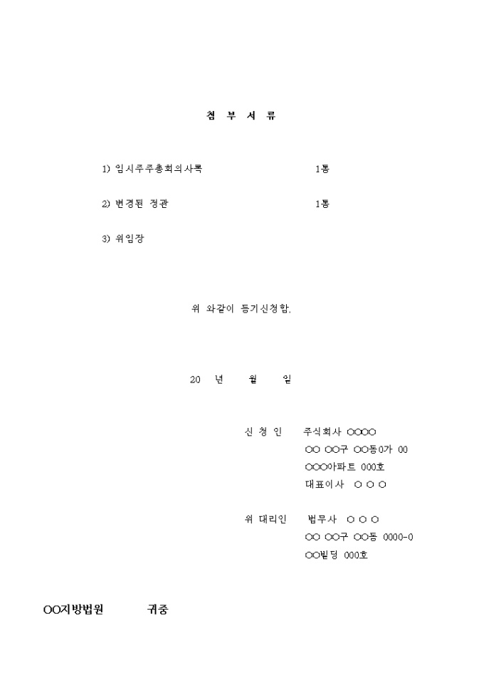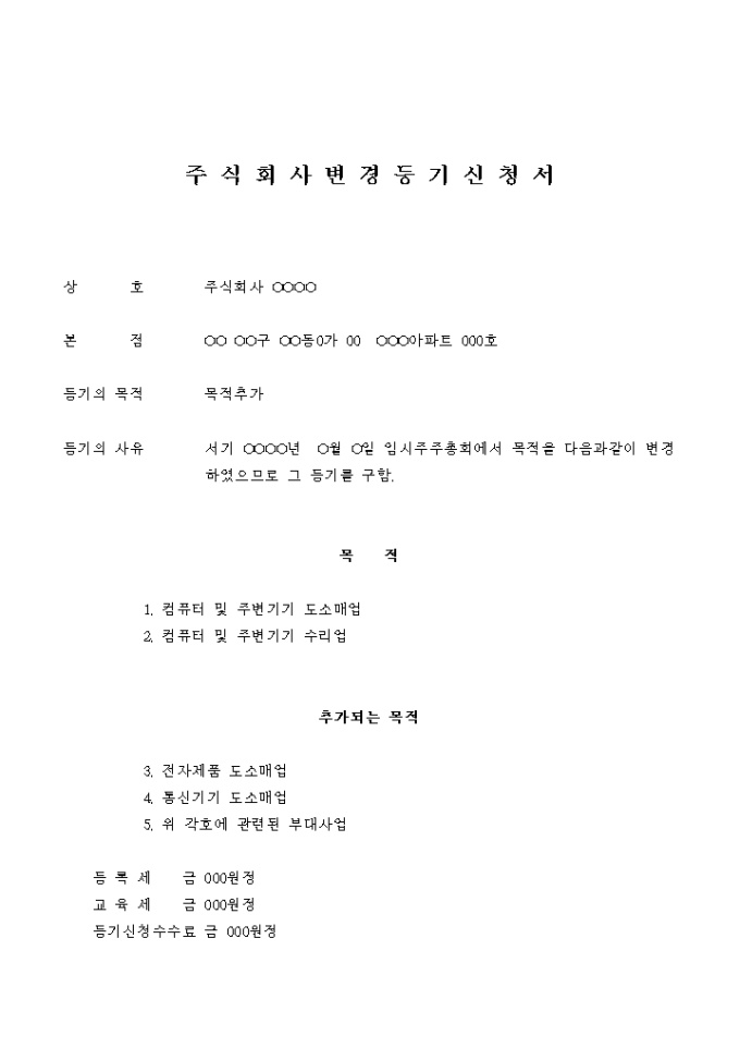 주식회사 변경 등기 신청서(목적추가)