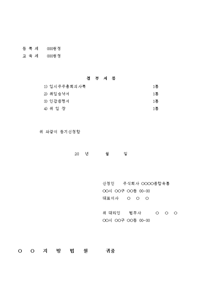 9,000원/월이사의 해임과 보선으로 인한 이사의 변경 및 목적의 변경을 등기하는 주식회사 변경 등기 신청서입니다.