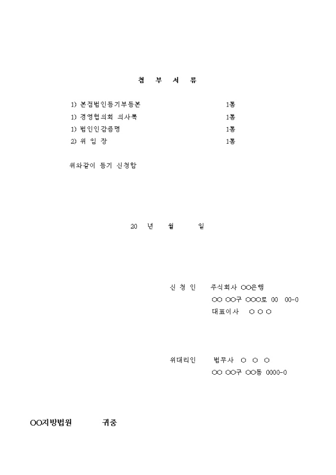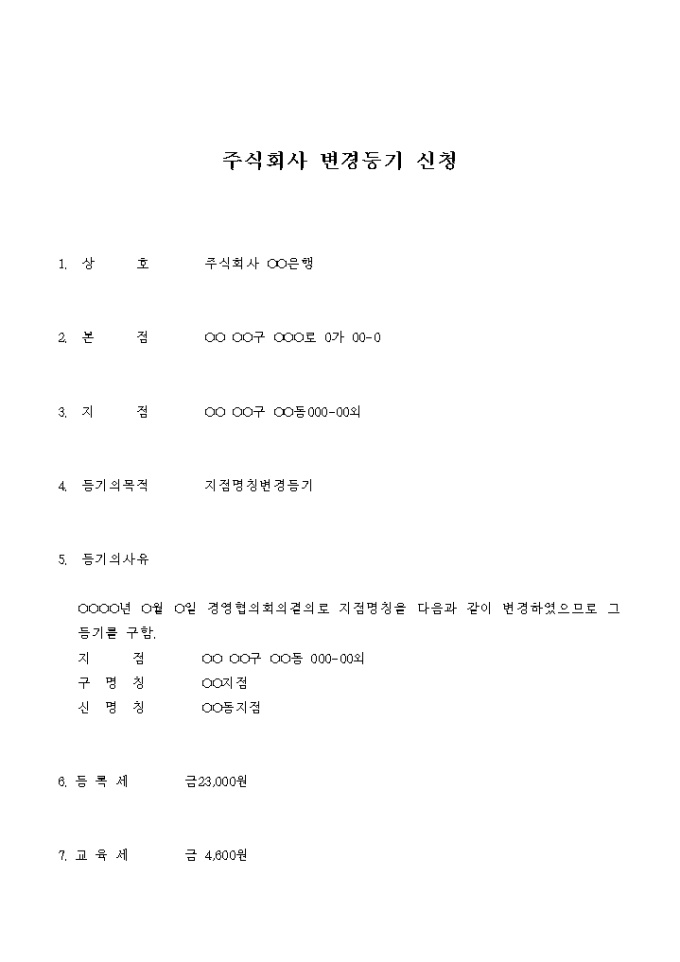주식회사 변경 등기 신청서(지점명칭 변경)