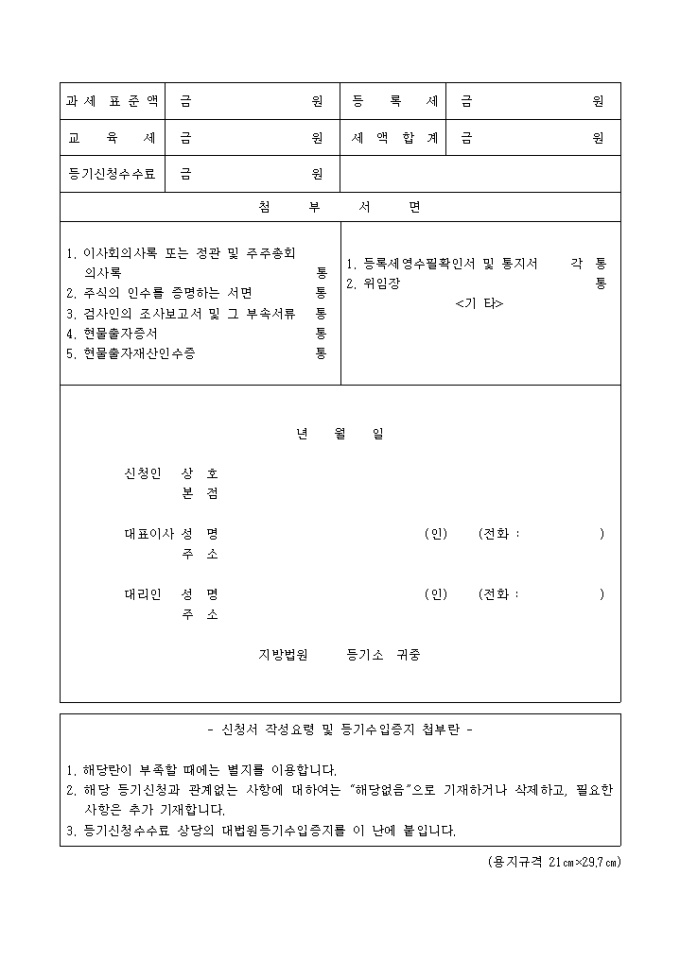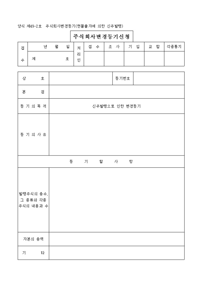 주식회사 변경등기(현물출자에 의한 신주발행)(양식 제49-2호)