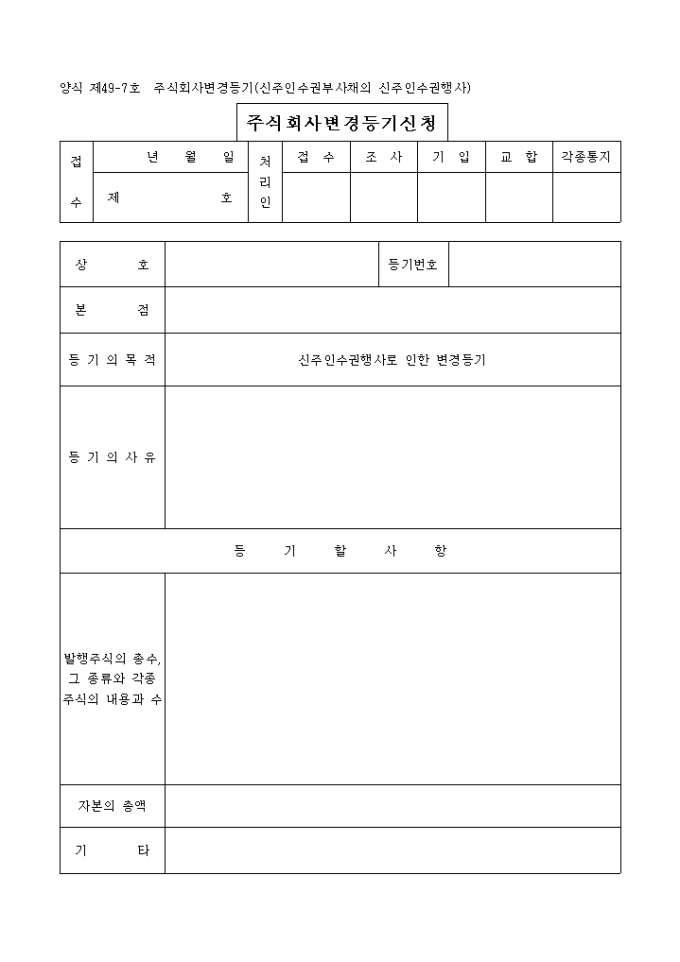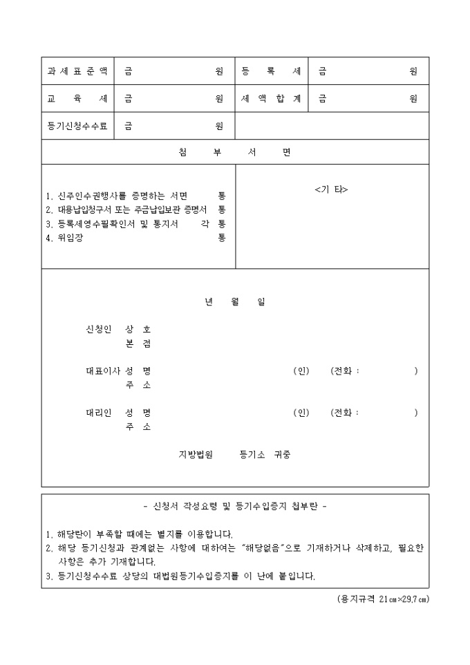 9,000원/월신주인수권행사로 인한 변경을 목적으로 하는 등기로써 첨부해야 하는 서류로는 신주인수권행사를 증명하는 서면, 대용납입청구서 또는 주금납입보관 증명서, 등록세영수필확인서 및 통지서, 위임장이 있습니다.