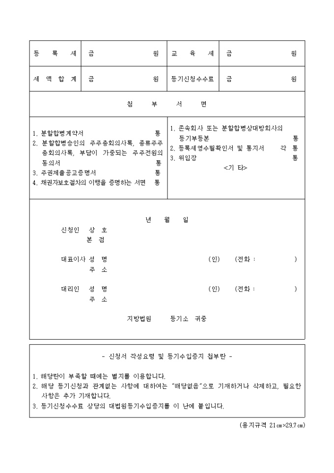 9,000원/월분할합병으로 인한 주식회사 해산을 목적으로 하는 등기로써 해산일자, 해산사유등을 기재해야 합니다.