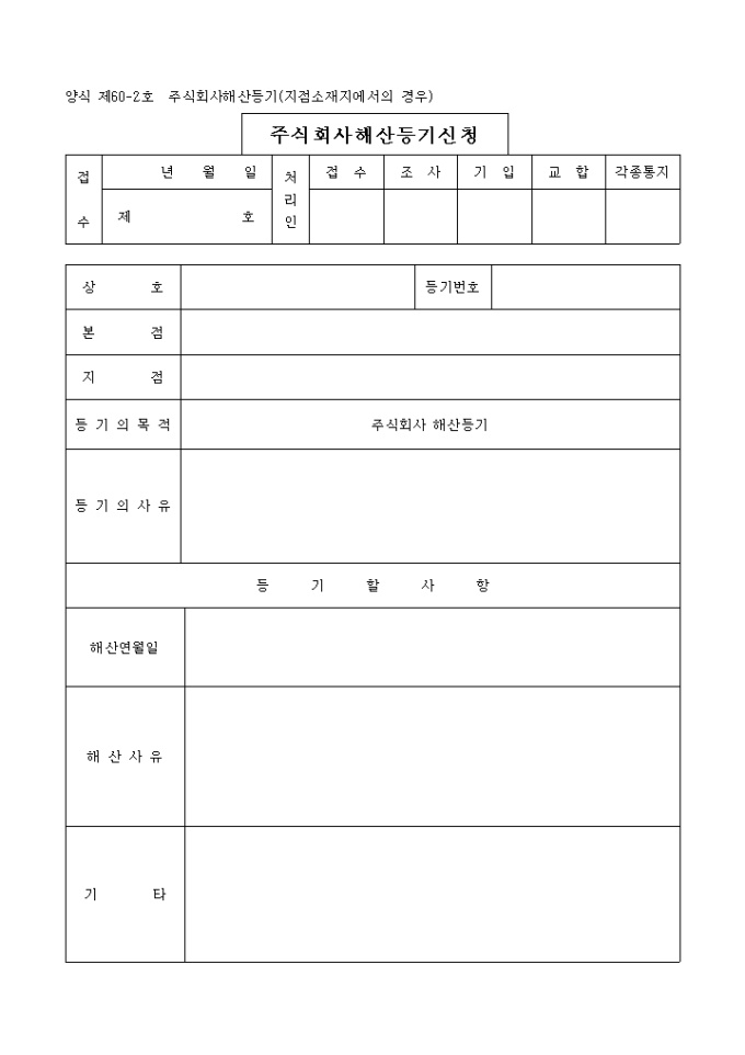 9,000원/월지점소재지에서의 경우 주식회사 해산을 목적으로 하는 등기로써 해산일자, 해산사유등을 기재해야 합니다.