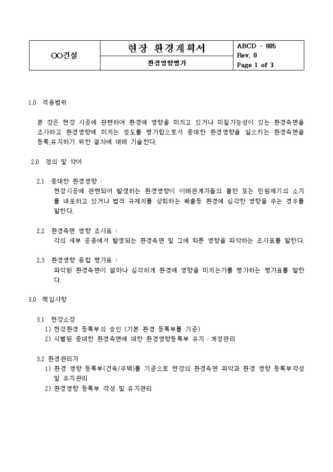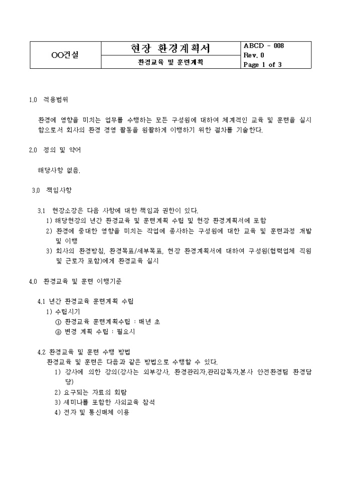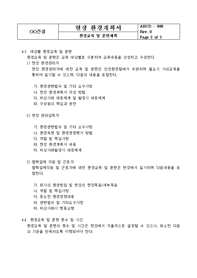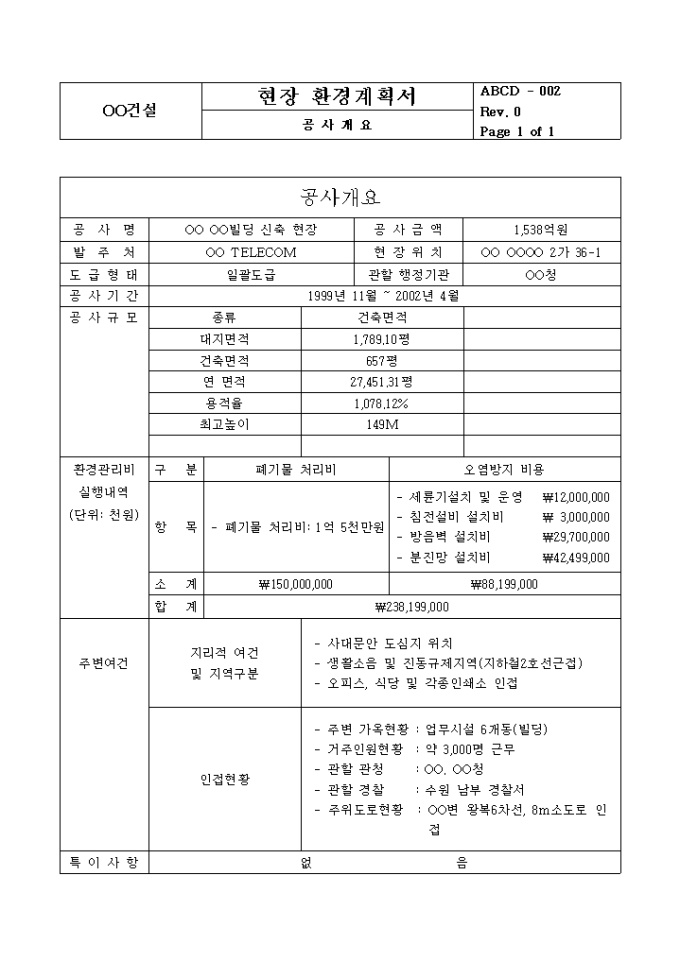 9,000원/월빌딩 신축시 사용하는 현장환경 계획서입니다.