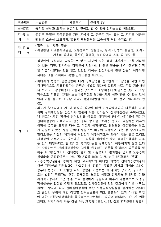 신체감정 신청{손해배상(자)}