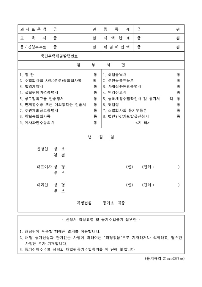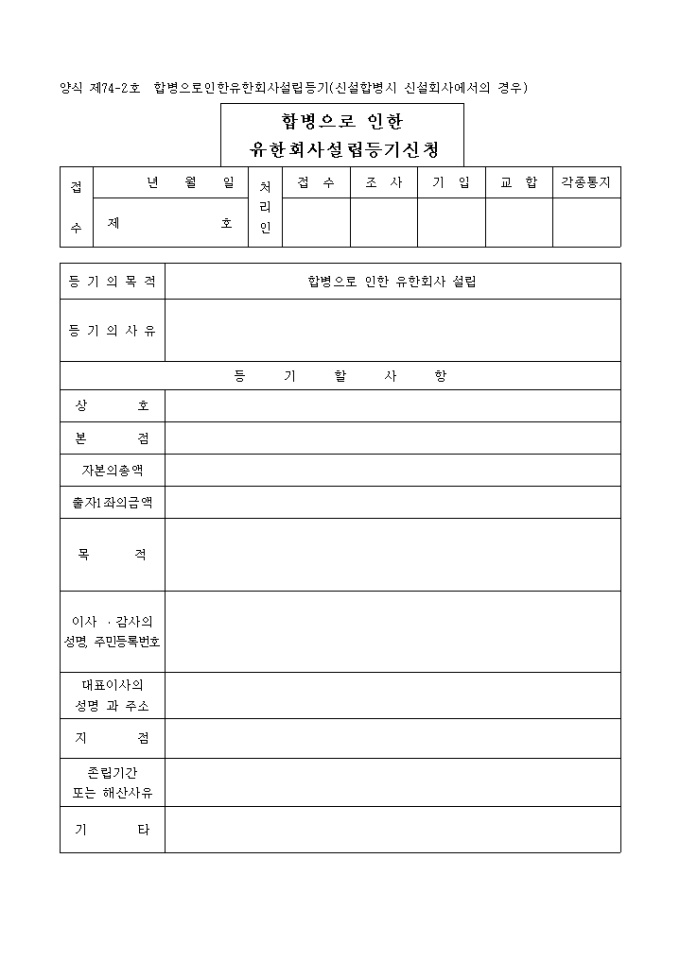 합병으로 인한 유한회사설립등기(신설합병시신설회사에서의경우)(양식 제74-2호)
