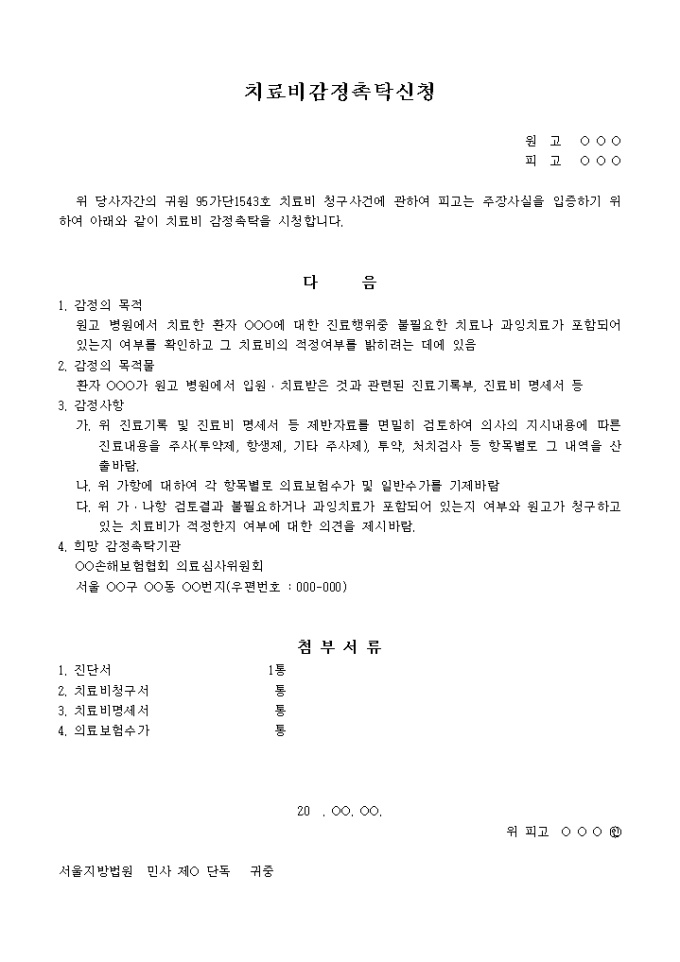 치료비감정촉탁신청은 치료비에 대한 내역을 감정하고자 할때 내는 신청서입니다.