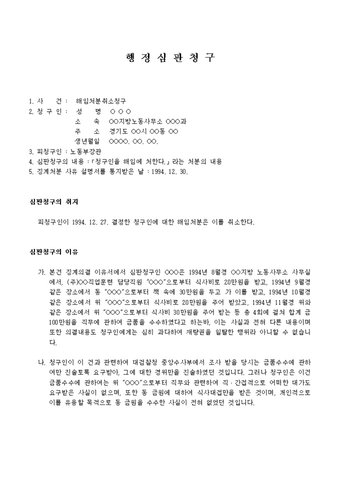 (행정심판청구)해임 처분취소 청구