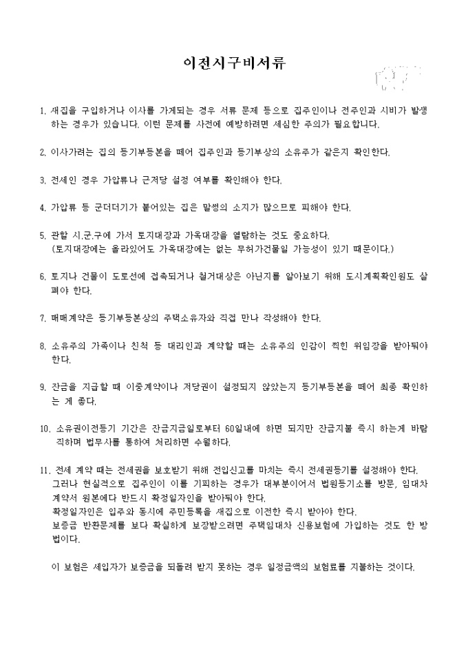 사무실 이전시 등기부동본확인사항,매매계약서등 구비서류에 대한 확인 및 주의사항으로 구성되어 있습니다.