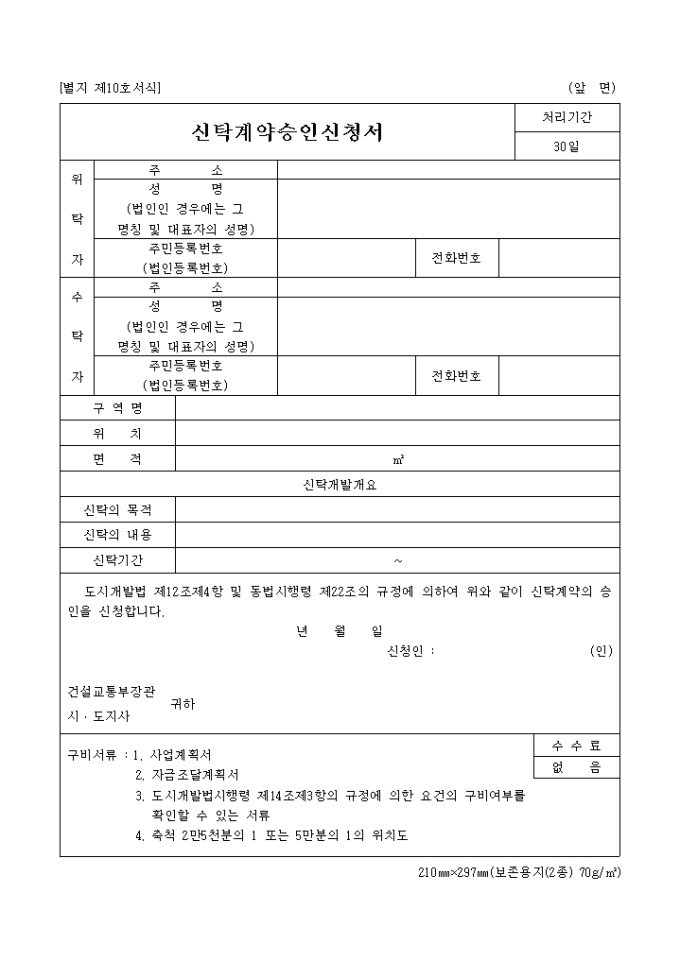 신탁계약승인신청서(별지 제10호)