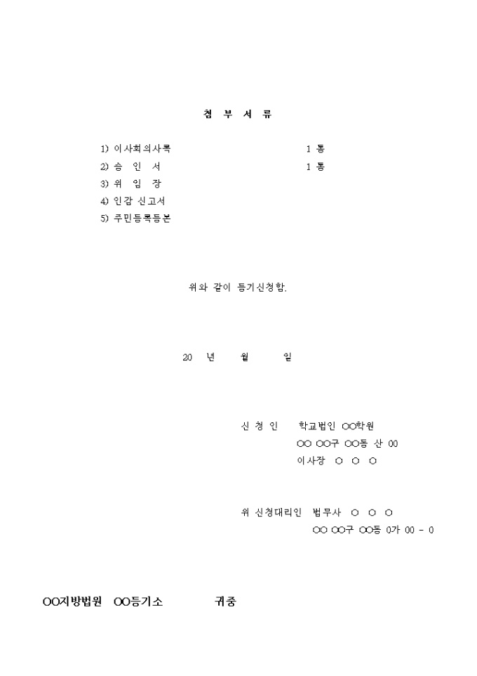 학교법인 변경 등기 신청서(이사변경등기)