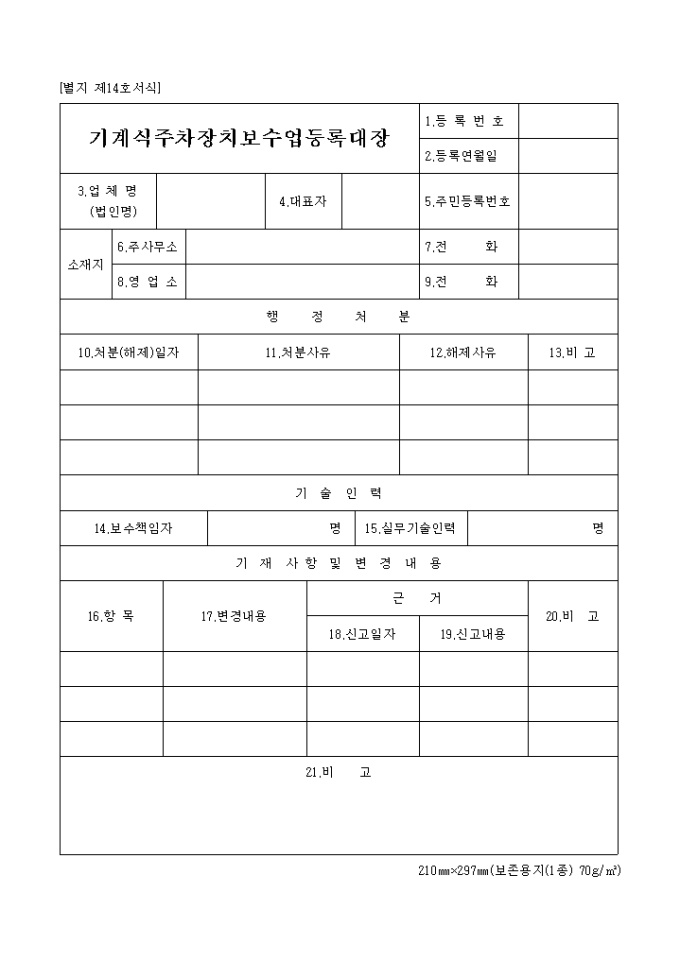 기계식주차장치보수업등록대장(별지 제14호)