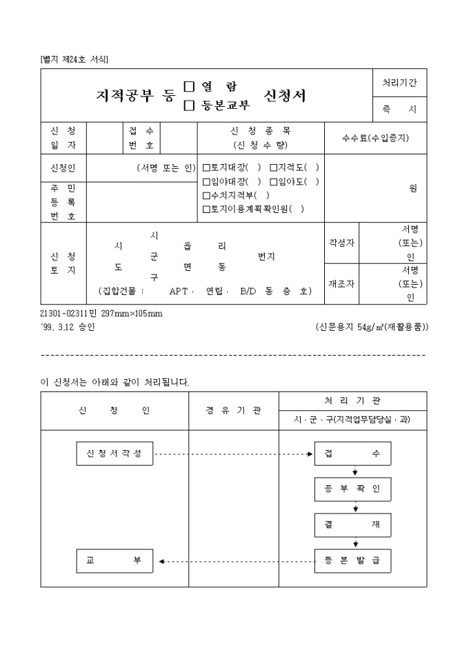 지적공부등(열람, 등본교부)신청서(별지 제24호)