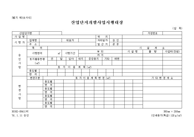 산업단지개발사업시행대장(별지 제3호)