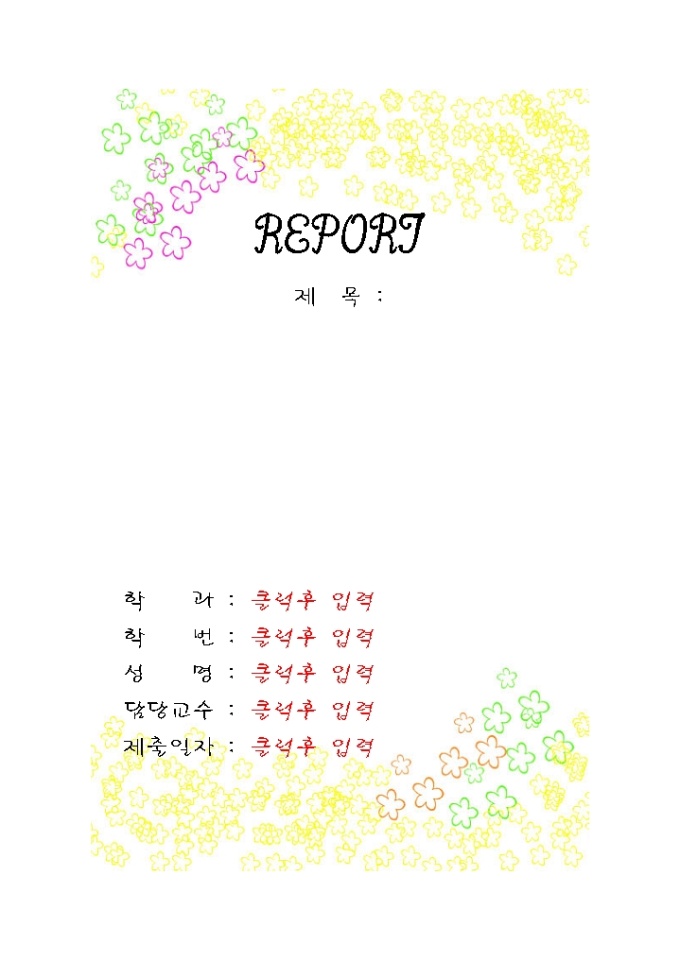 9,000원/월노란색, 보라색 등의 꽃무늬로된 레포트표지입니다.