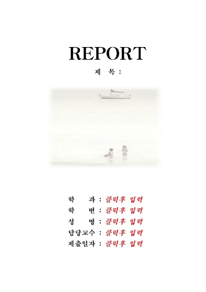 바다에 아이들이 놀고 배가 다니는 배경의 레포트 표지입니다.