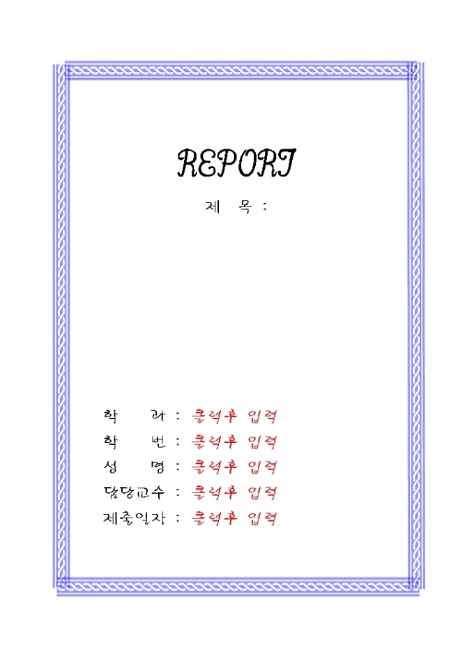 밧줄모양이 들어간 파란색 사각 테두리의 레포트 표지입니다.