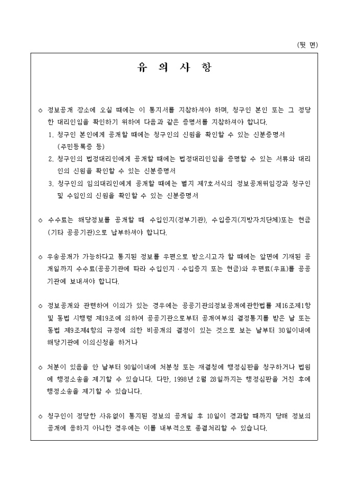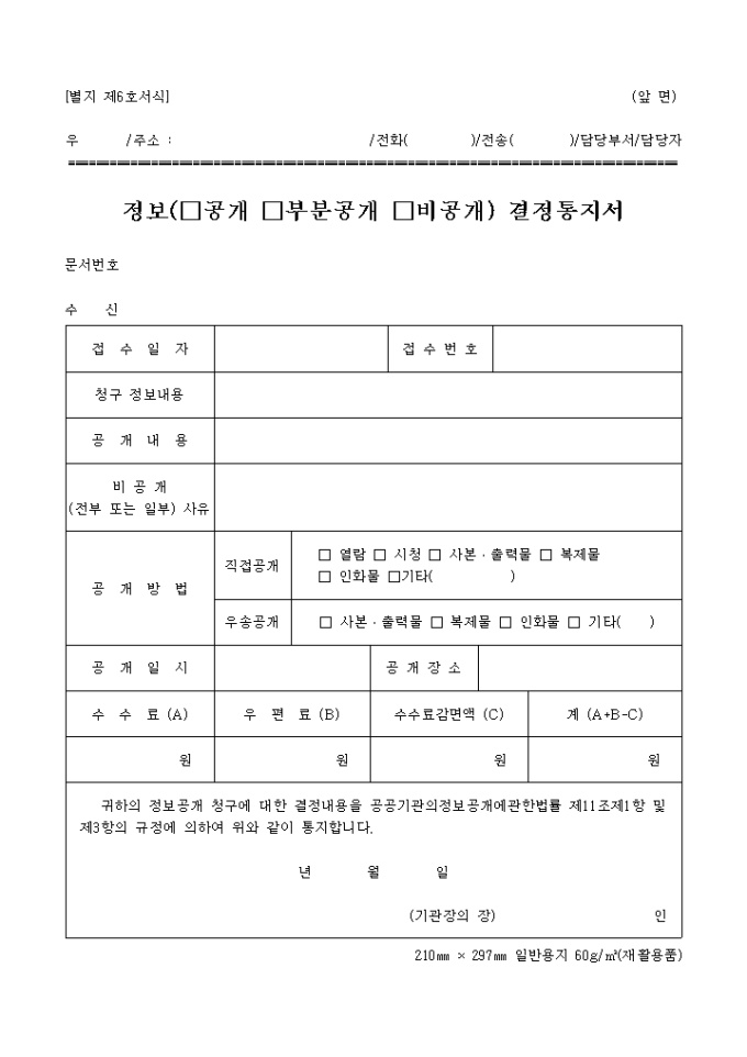 정보(공개, 부분공개, 비공개)결정통지서(별지 제6호서식)
