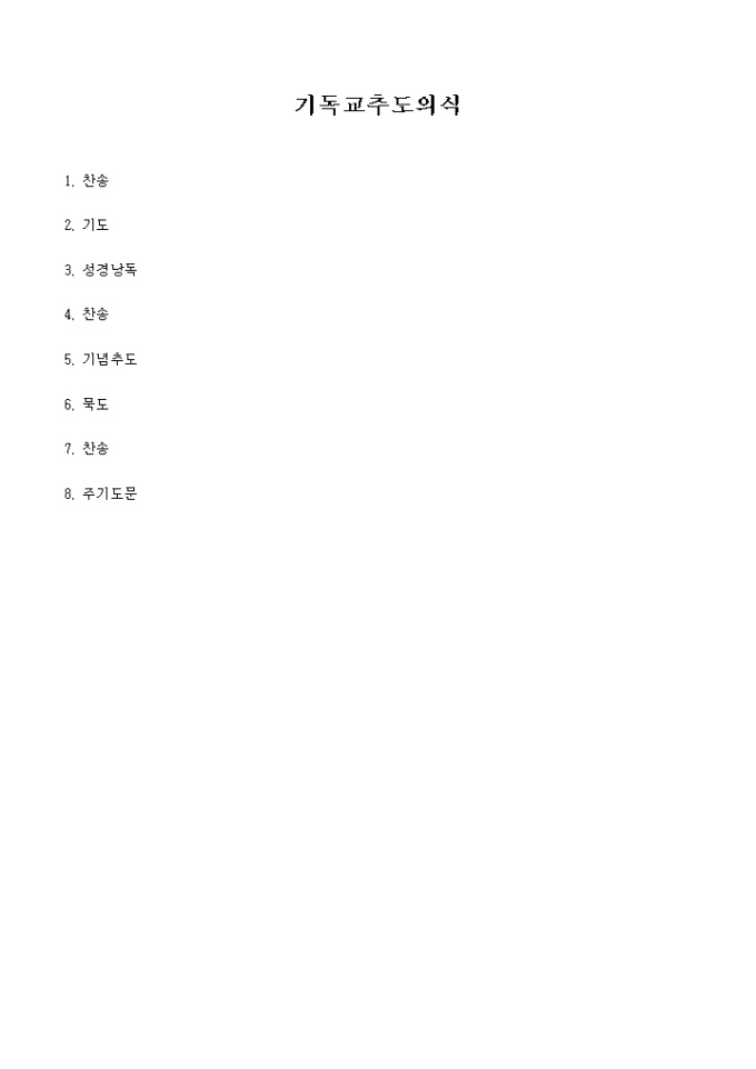 기독교추도의식순입니다. 기독교에서 행하는 추도에 대한 의식을 할때 필요한 순서를 나열한 서식입니다.