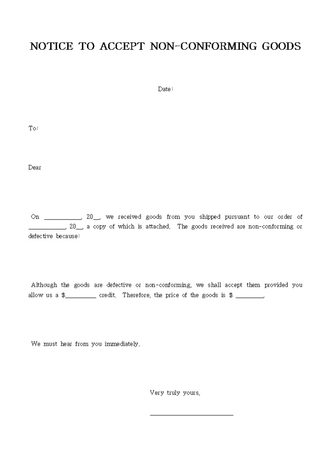 NOTICE TO ACCEPT NON-CONFORMING GOODS