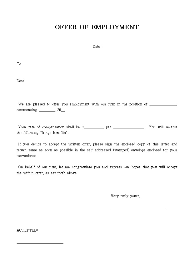9,000원/월OFFER OF EMPLOYMENT입니다. 아래는 전체내용중 일부분입니다. We are pleased to offer you employment with our firm in the position of _______________, commencing _________, 20__. Your rate of compensation shall be $___________