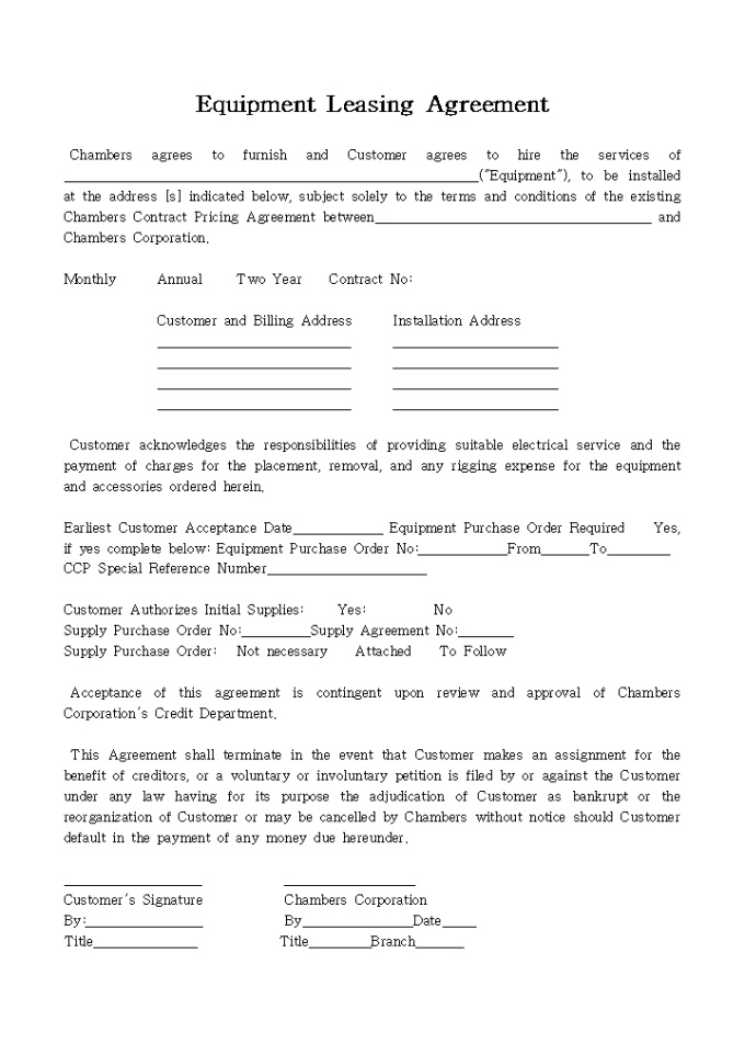 9,000원/월Equipment Leasing Agreement입니다. 아래는 전체내용중 일부분입니다.