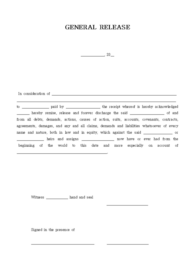 9,000원/월GENERAL RELEASE입니다. 아래는 전체내용중 일부분입니다. In consideration of _____________________________ ________________________________________________________ to _______________ paid by ___________________ the receipt
