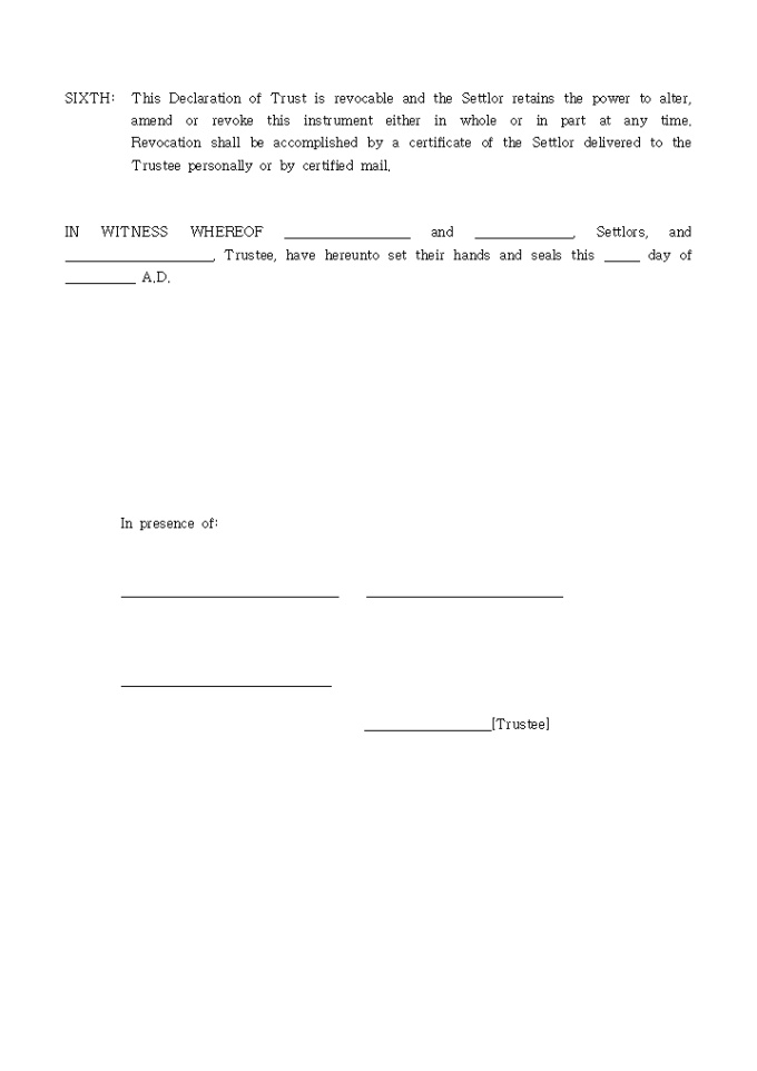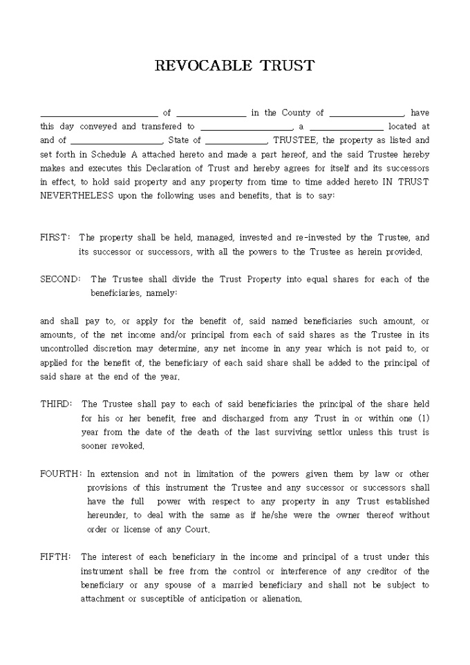 9,000원/월REVOCABLE TRUST입니다. 아래는 전체내용의 일부분입니다. County of _________________, have this day conveyed and transfered to _____________________, a _________________ located at and of _____________________, State of ______________, TRUSTEE,