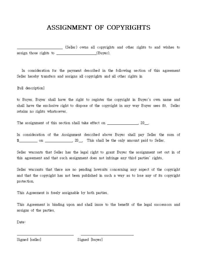ASSIGNMENT OF COPYRIGHTS 판권에 관련된 내용입니다.