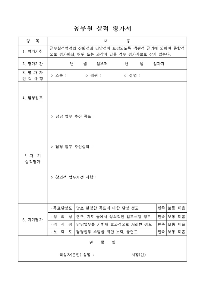 공무원 실적평가서