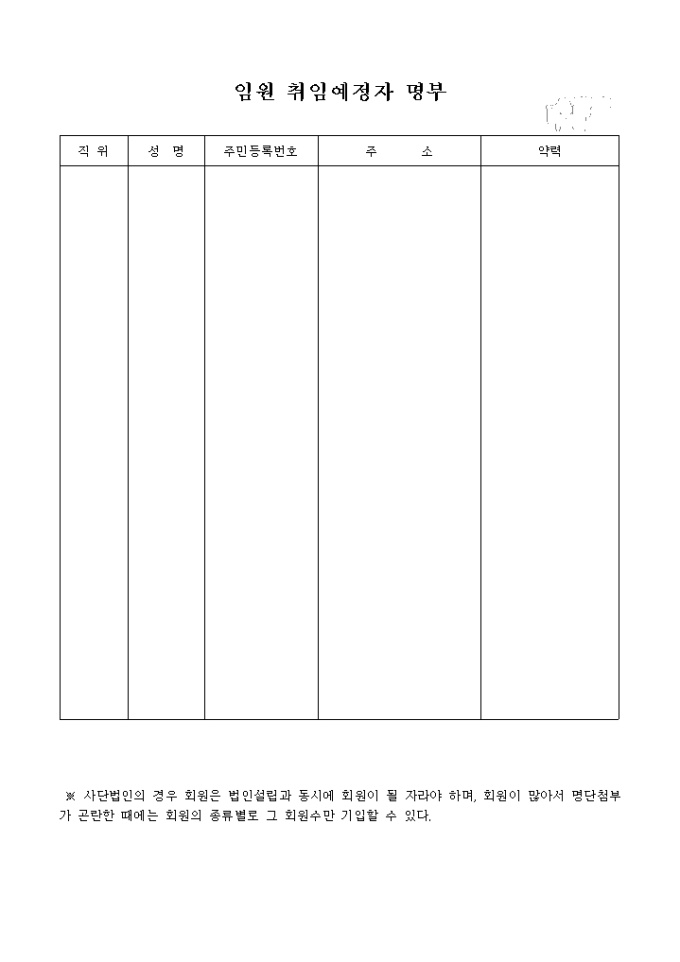 9,000원/월직위,성명,주민번호,주소,약력을 기재합니다.