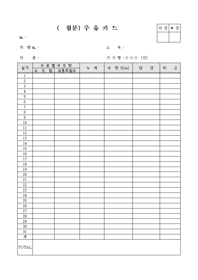 9,000원/월월간주유카드 관리일지 입니다.