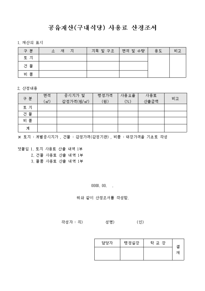 공유재산(구내식당)사용료 산정조서