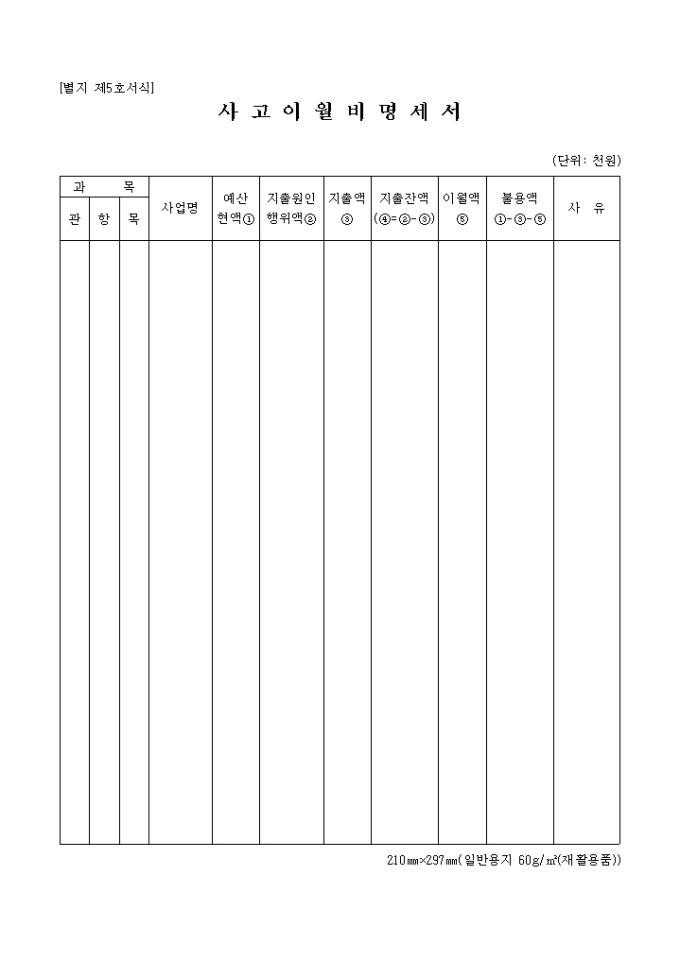 사고이월비 명세서