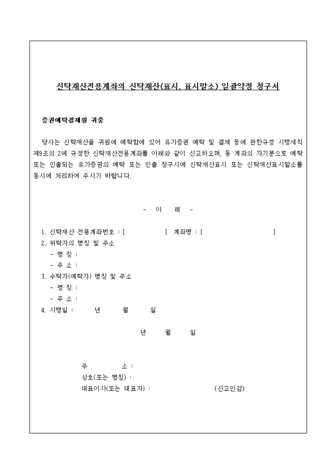 9,000원/월신탁재산전용계좌의 신탁재산(표시, 표시말소) 일괄약정 청구서