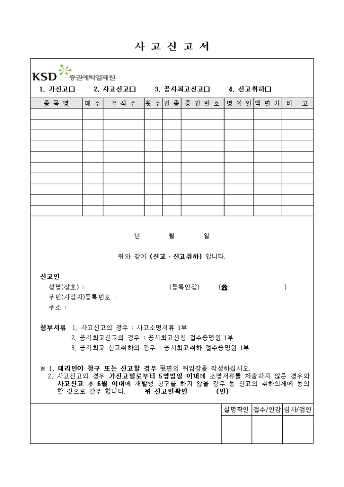 유가증권 사고신고서