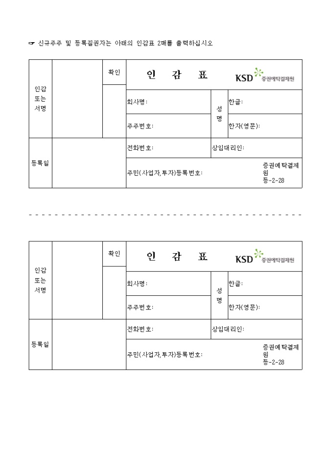 9,000원/월2개의 인감표로 구성되어 있으며 신규주주 및 등록질권자는 인감표 2매를 출력하셔야 합니다.