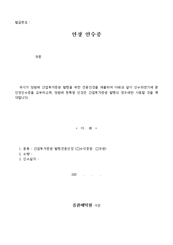 인장 인수증(간접투자증권용)