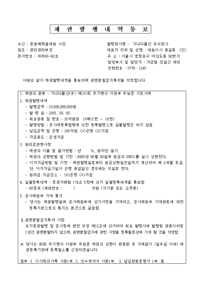 9,000원/월채권발행 내역통보(p-cbo)는 채권발행내역을 통보하며 권면분할금지특약을 약정한다는 내용으로 되어 있습니다.