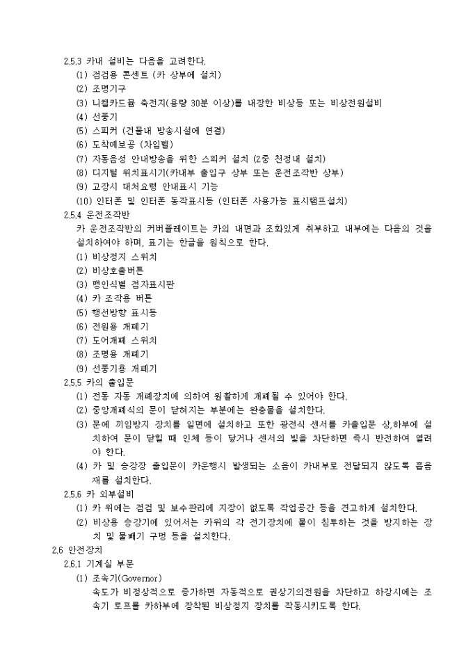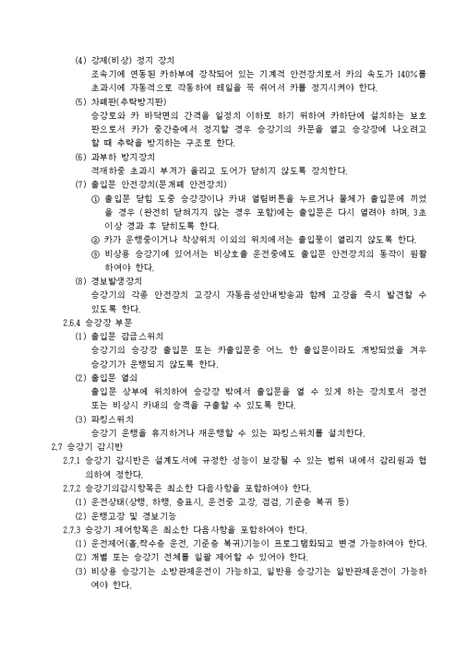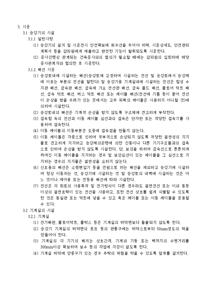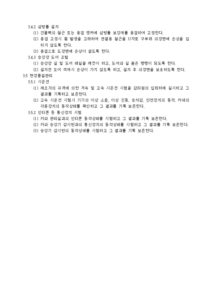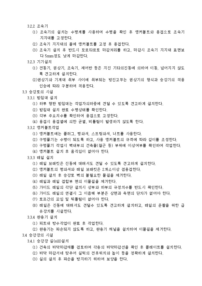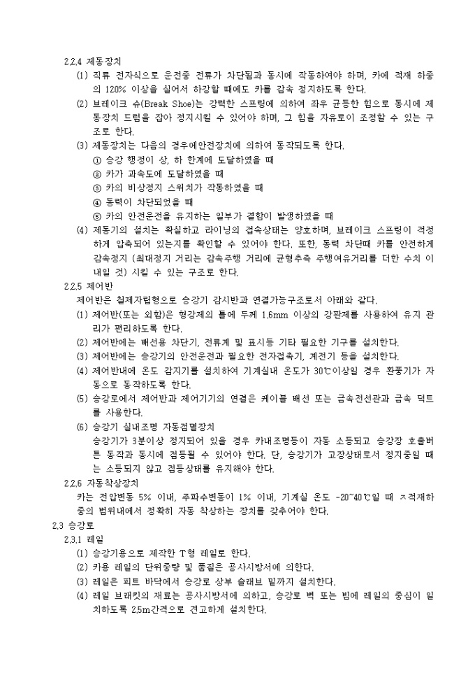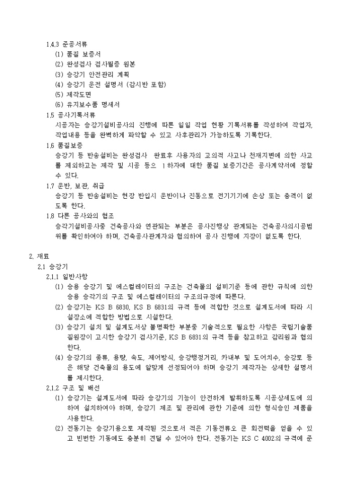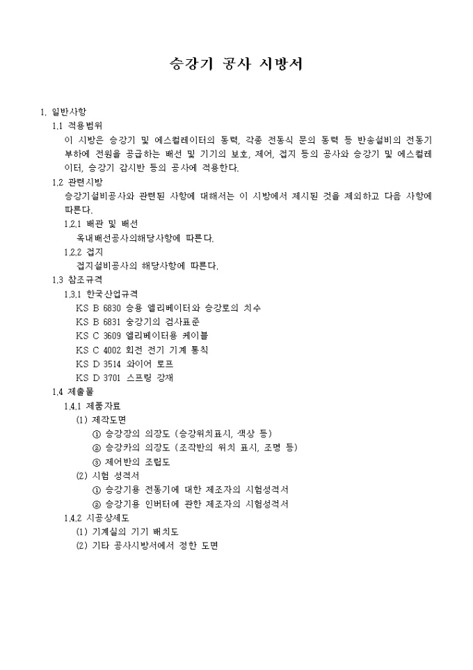9,000원/월아래의 항목으로 이루어진 승강기공사 시방서입니다.