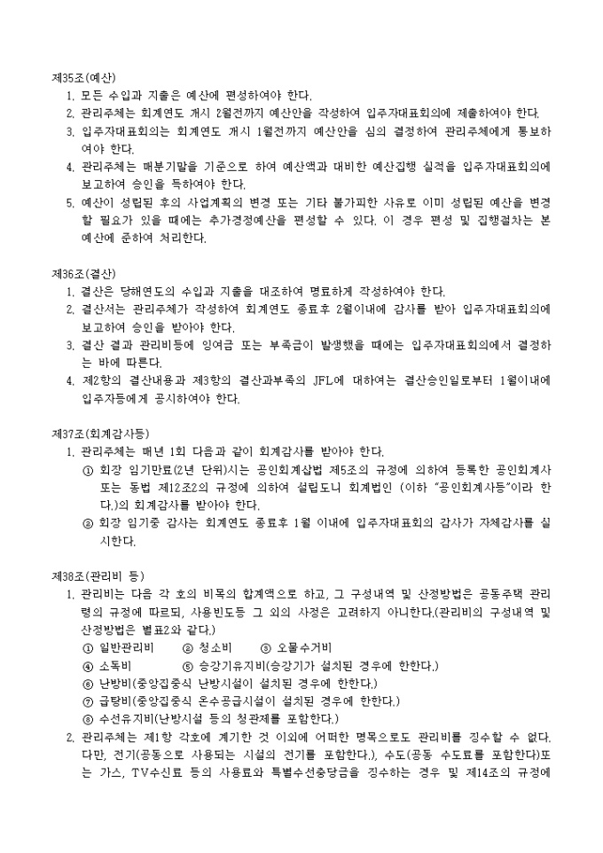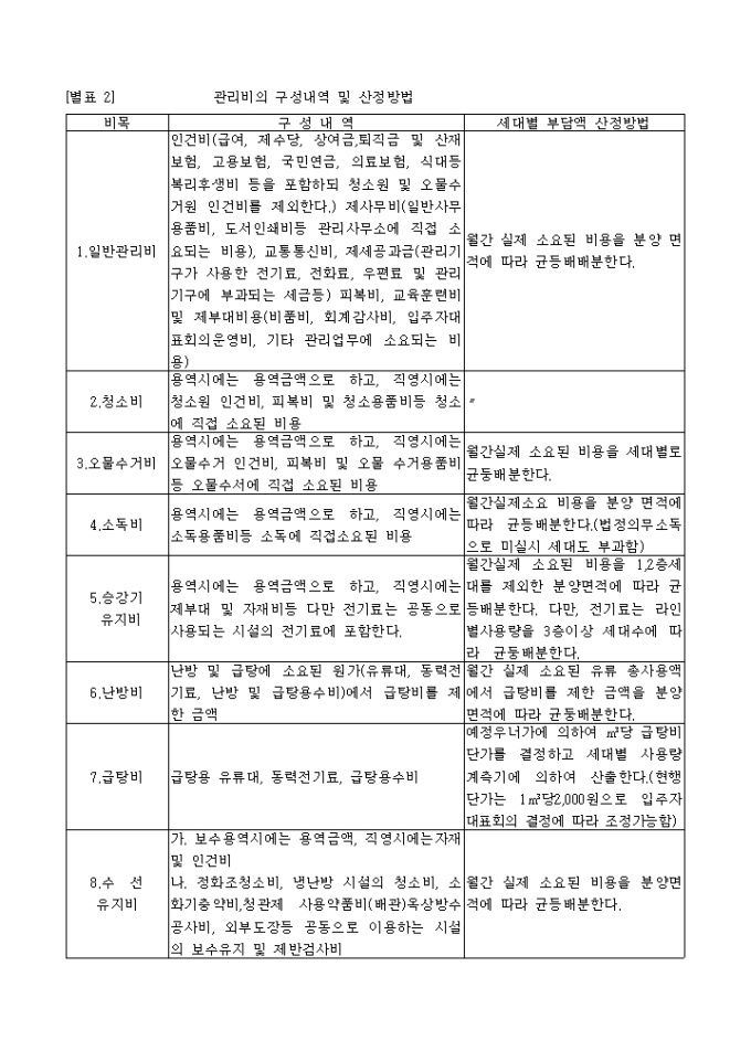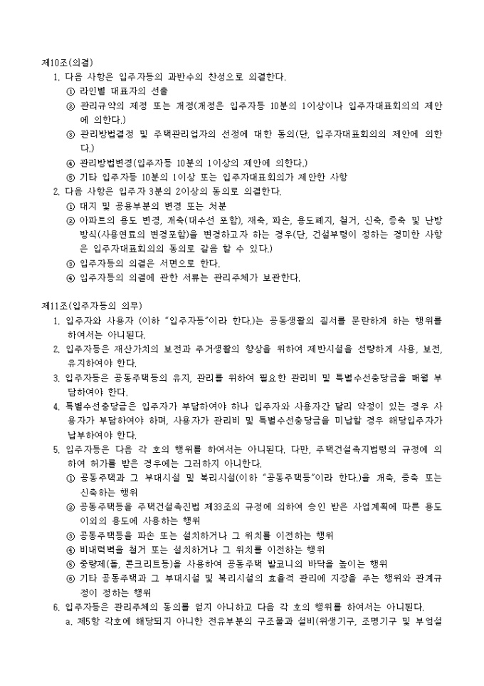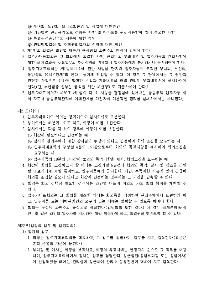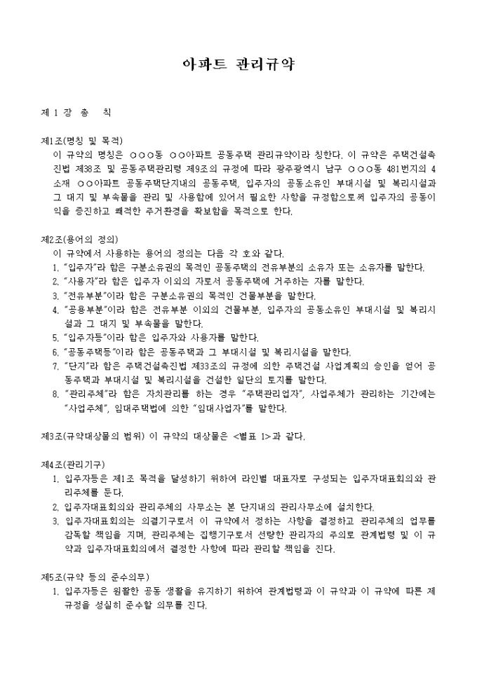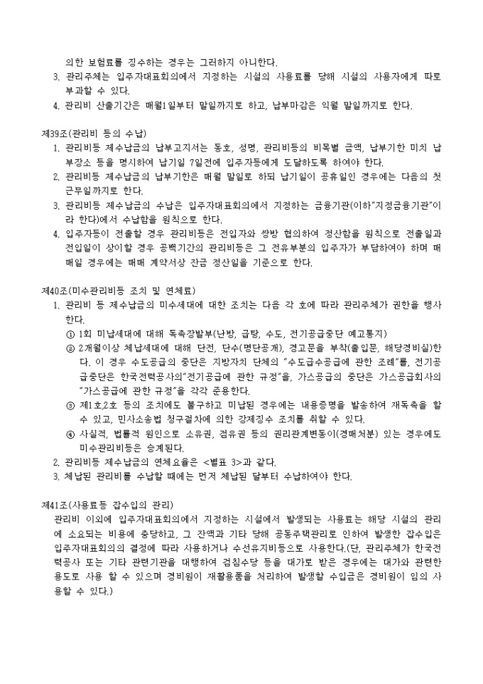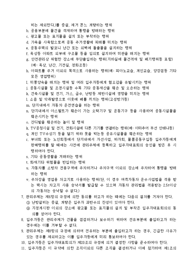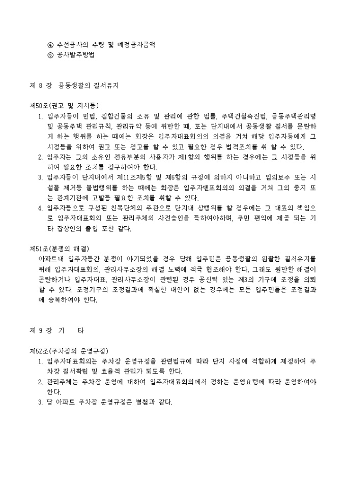 9,000원/월아래의 항목으로 이루어진 아파트 관리규약입니다.
