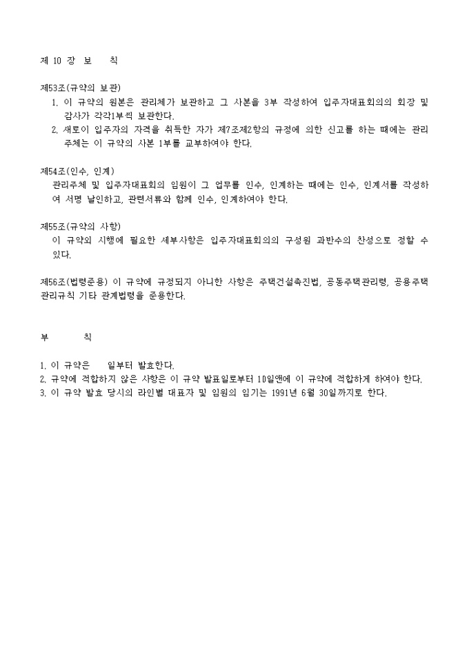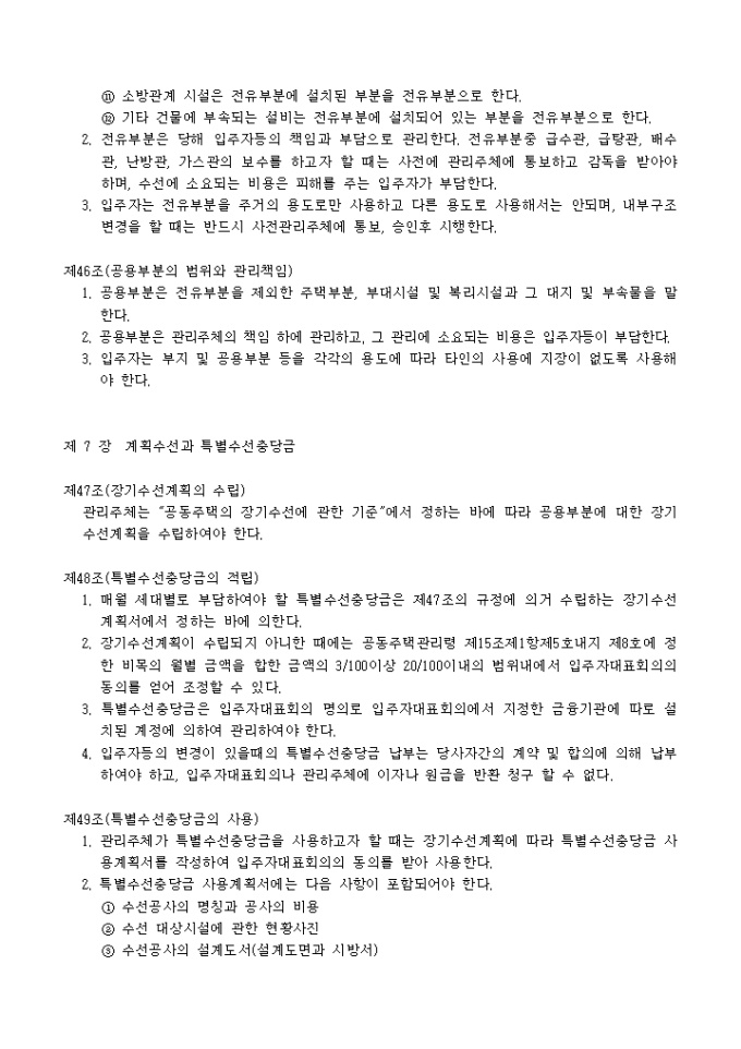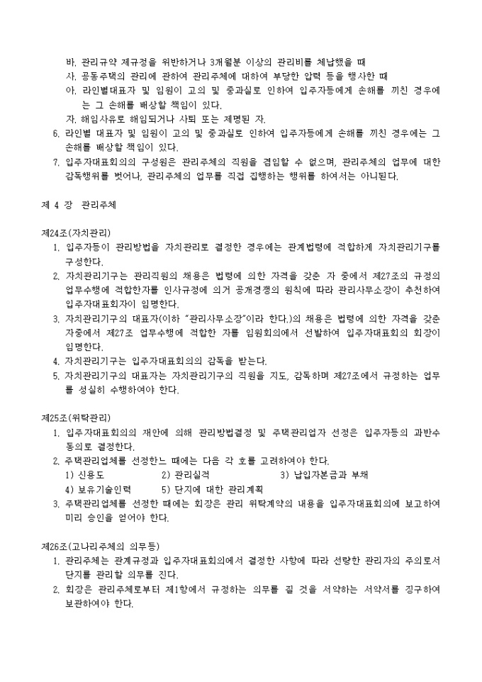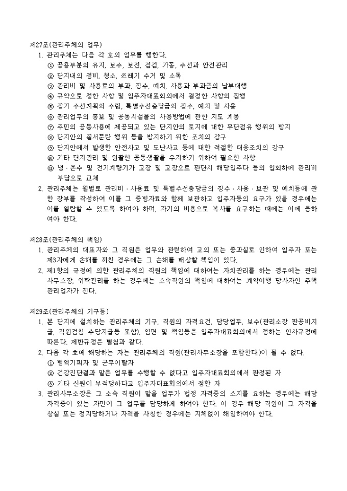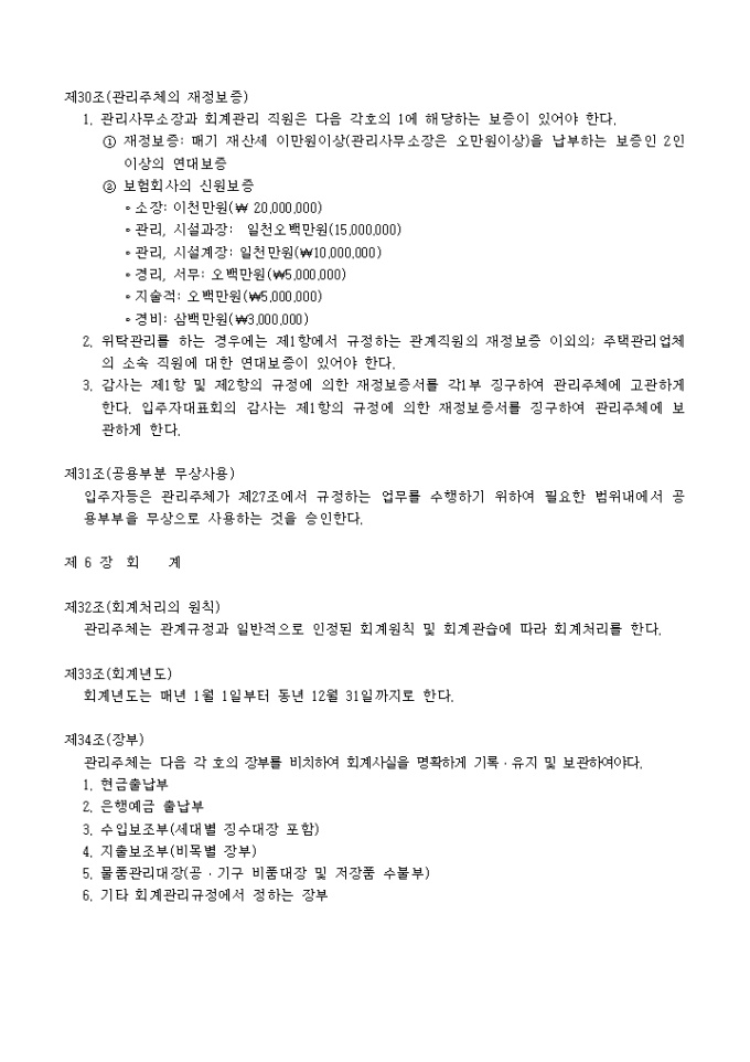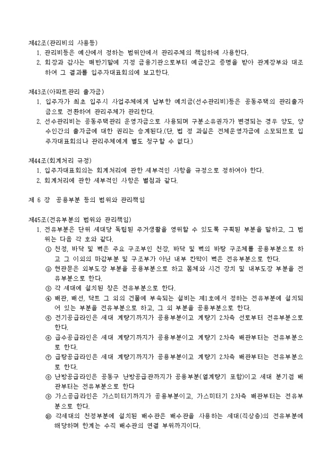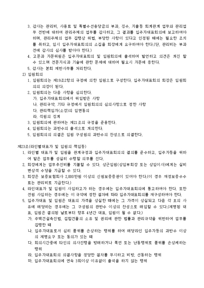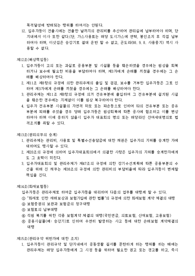 9,000원/월아래의 항목으로 이루어진 아파트 관리규약입니다.